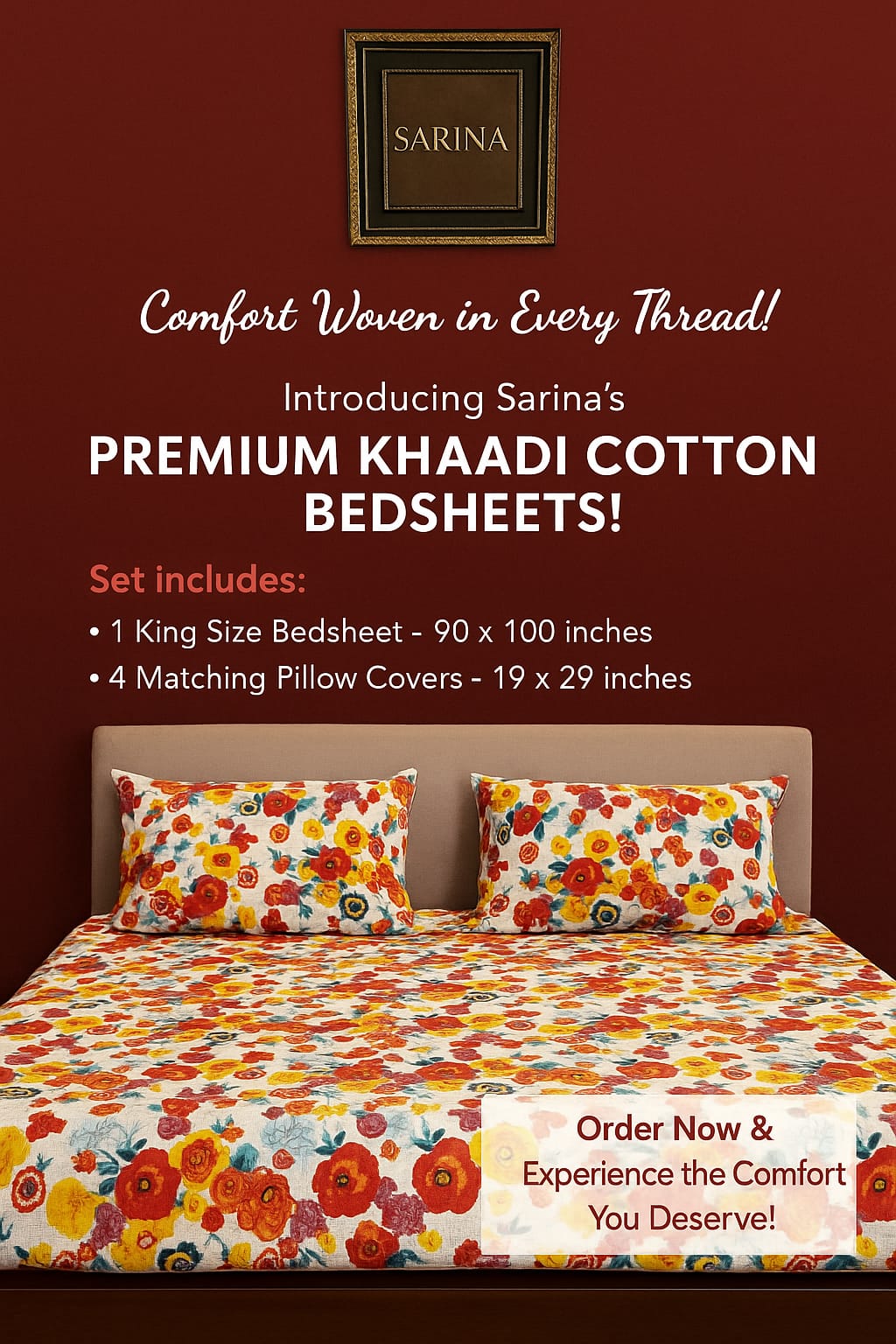 - Craftsmanship: Features traditional 'Tarkashi' (hand-pulled threadwork) along the header of the sheet and pillowcase edges.
