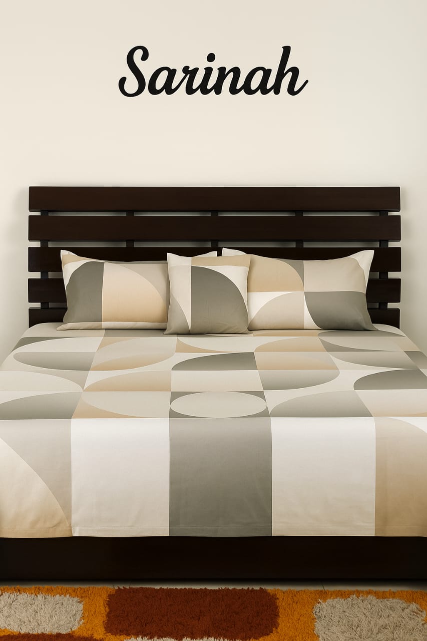 Bring a modern, designer edge to your bedroom with the “Urban Mosaic” set. Featuring a bold interplay of charcoal grey and warm ochre yellow in a geometric abstract print, this ready-to-use King-size set is engineered for a perfect fit. Crafted from premium cotton, it offers a sharp, high-contrast look that is both stylish and incredibly durable.